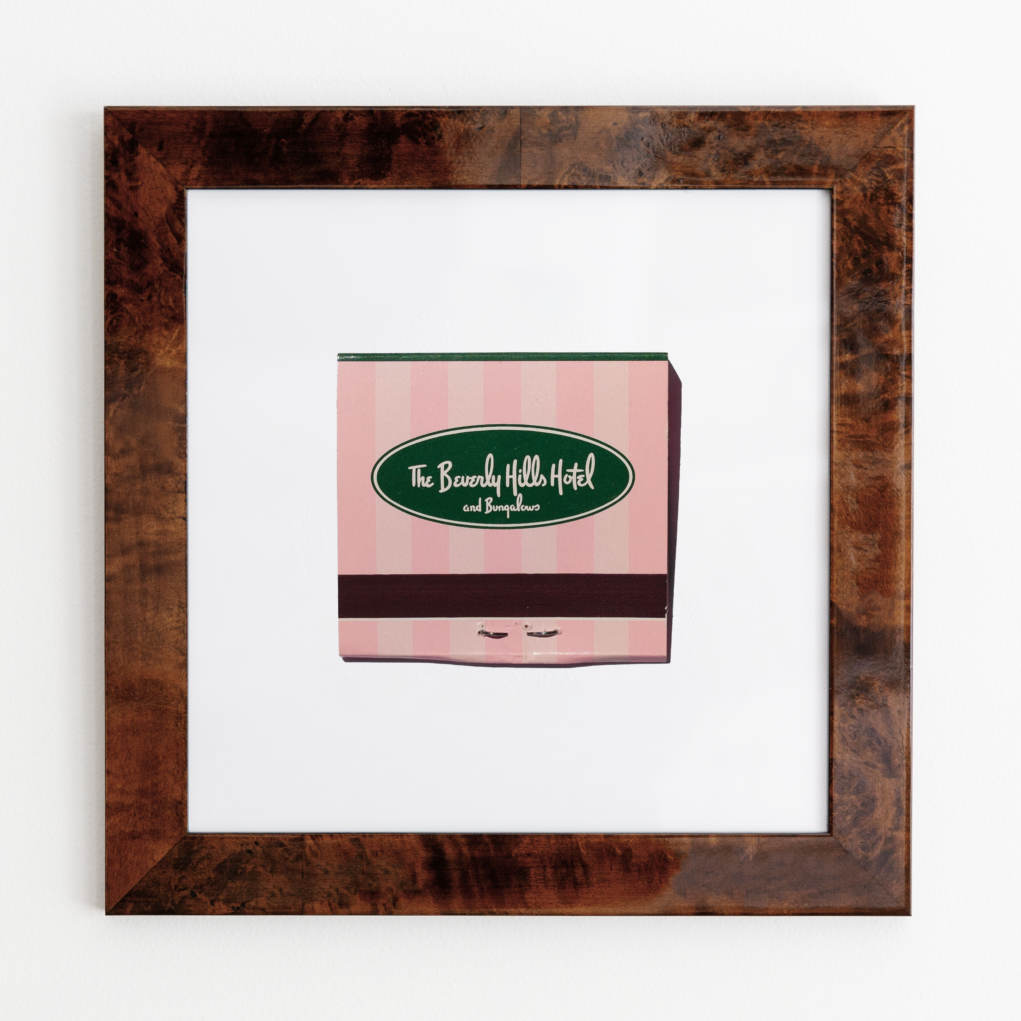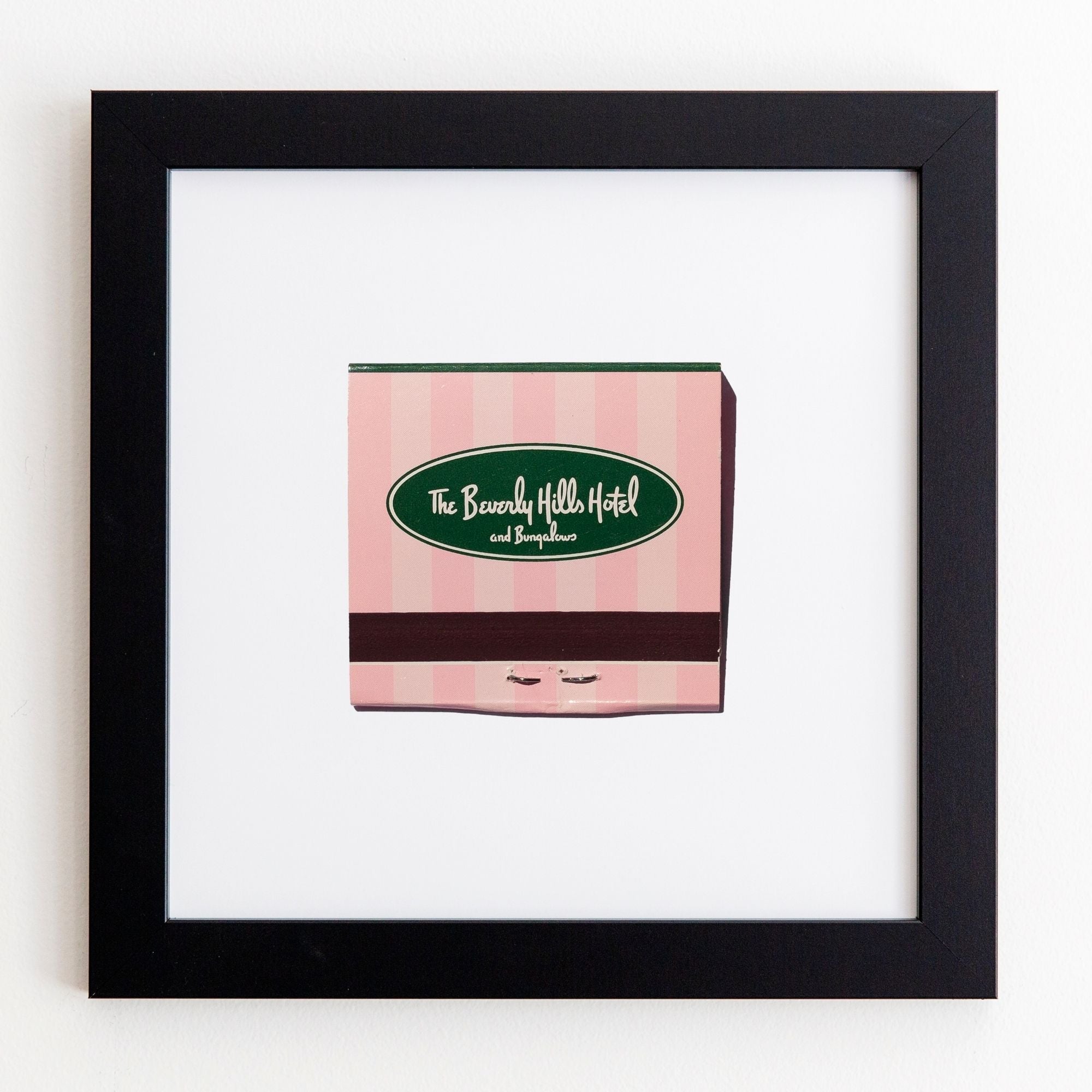 The Beverly Hills Hotel (Green Oval) print showcases an iconic matchbook design.