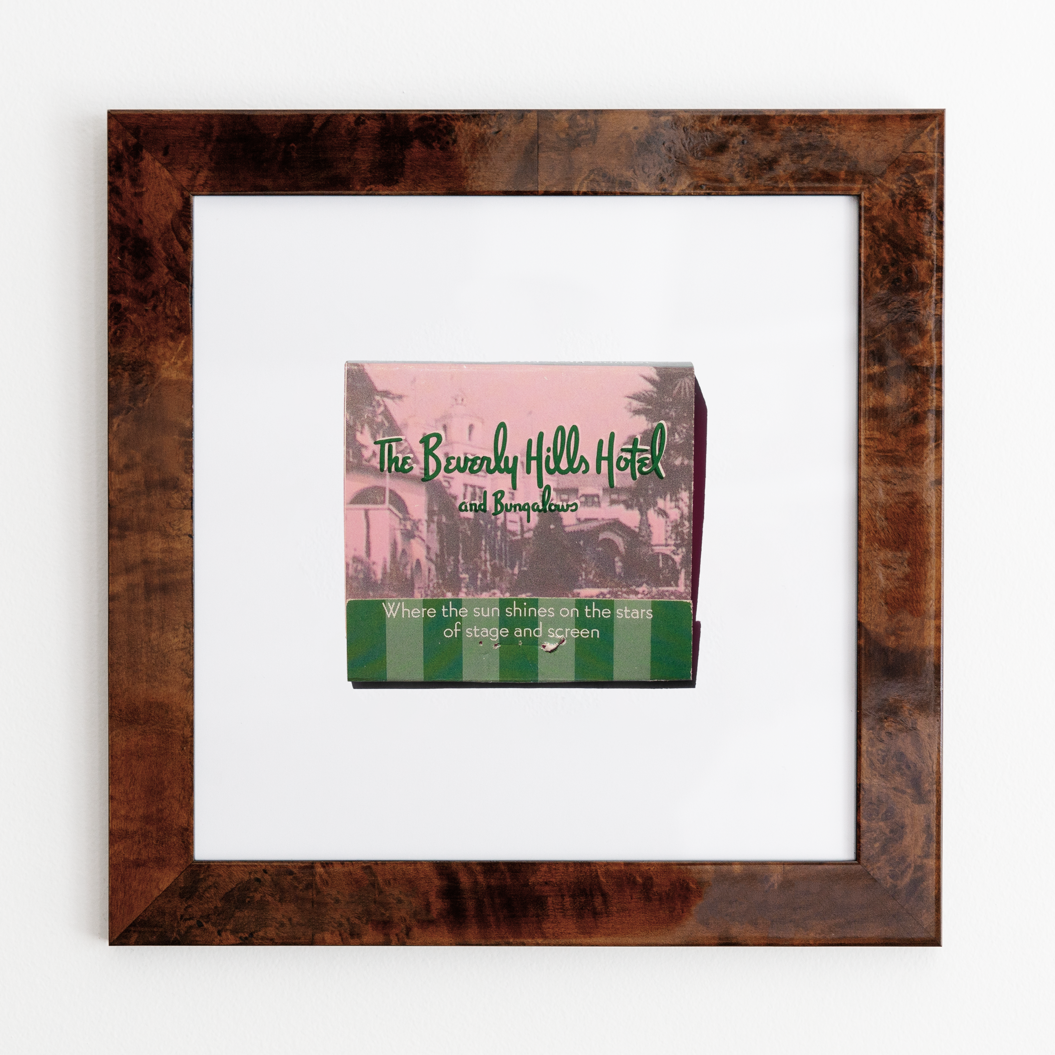 The Beverly Hills Hotel (Pink Photo) print showcases an iconic matchbook design.