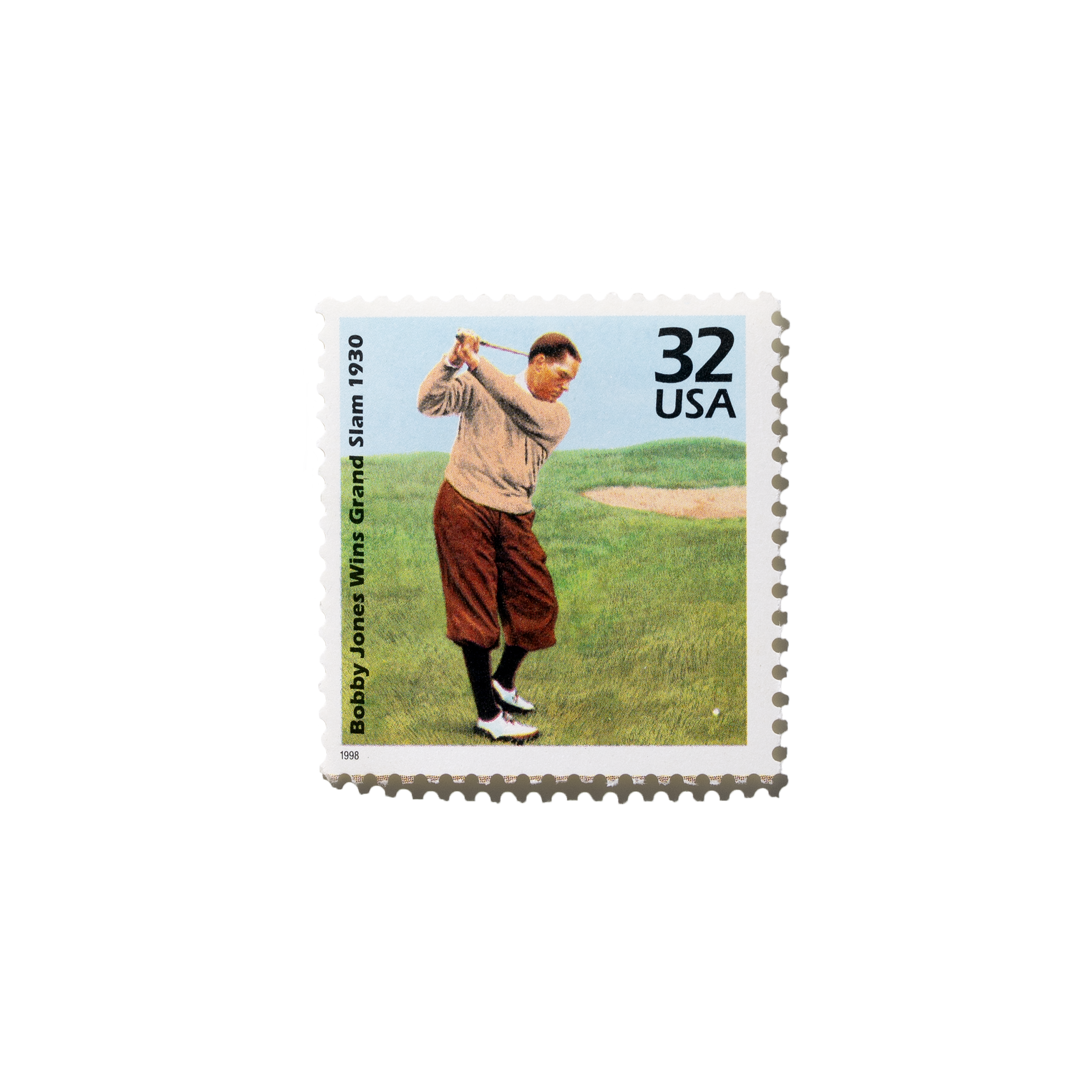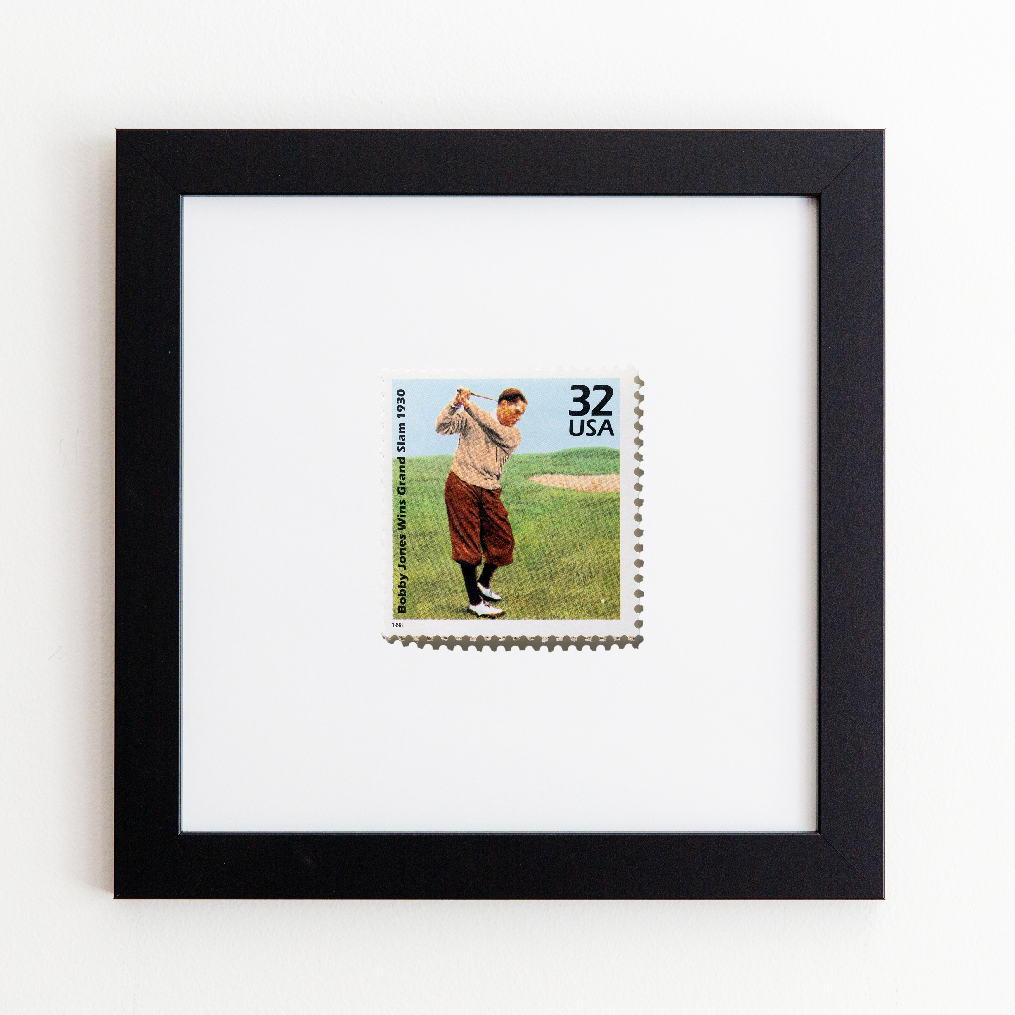 The Bobby Jones Grand Slam Stamp print showcases an iconic matchbook design.