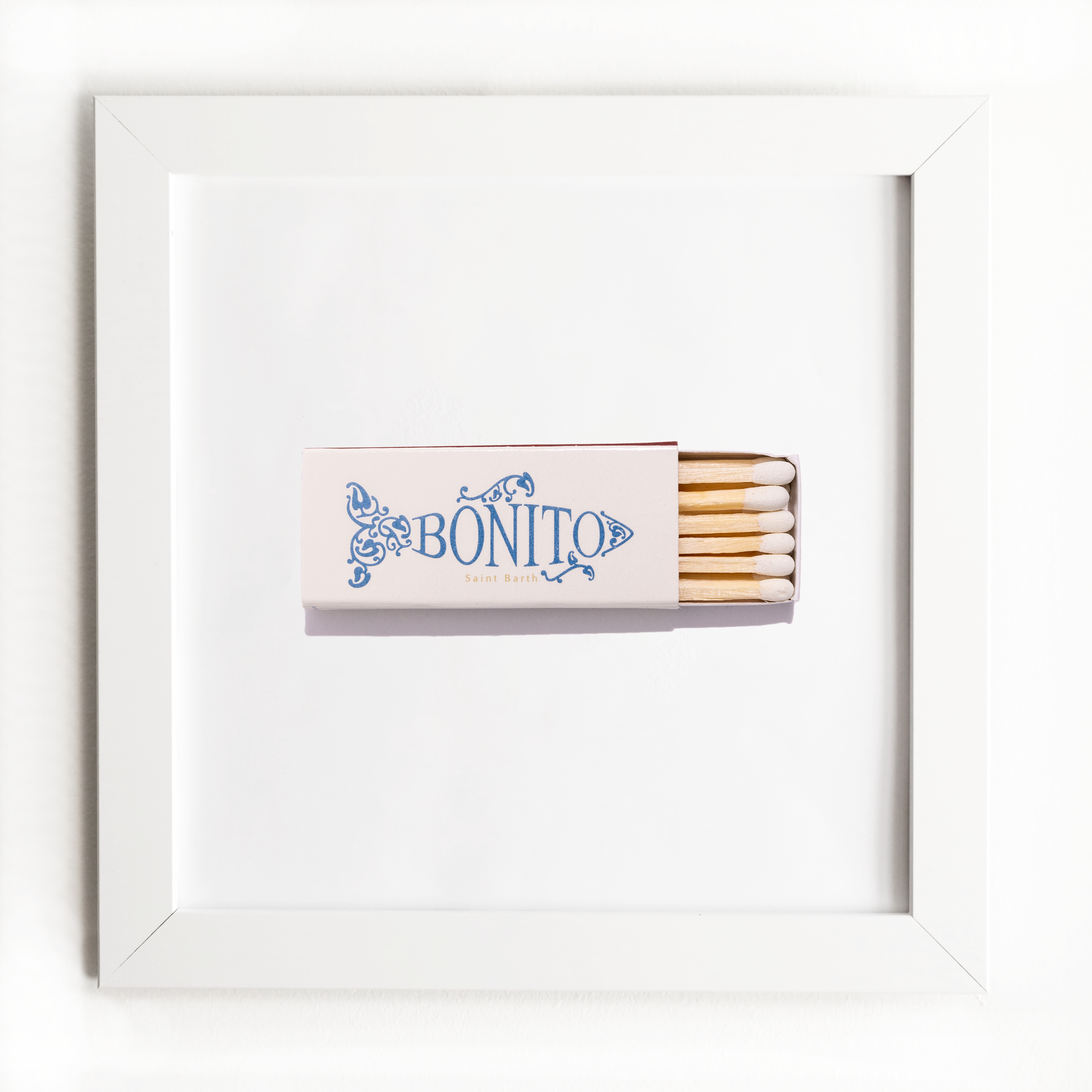 The Bonito St. Barths print showcases an iconic matchbook design.