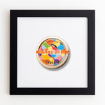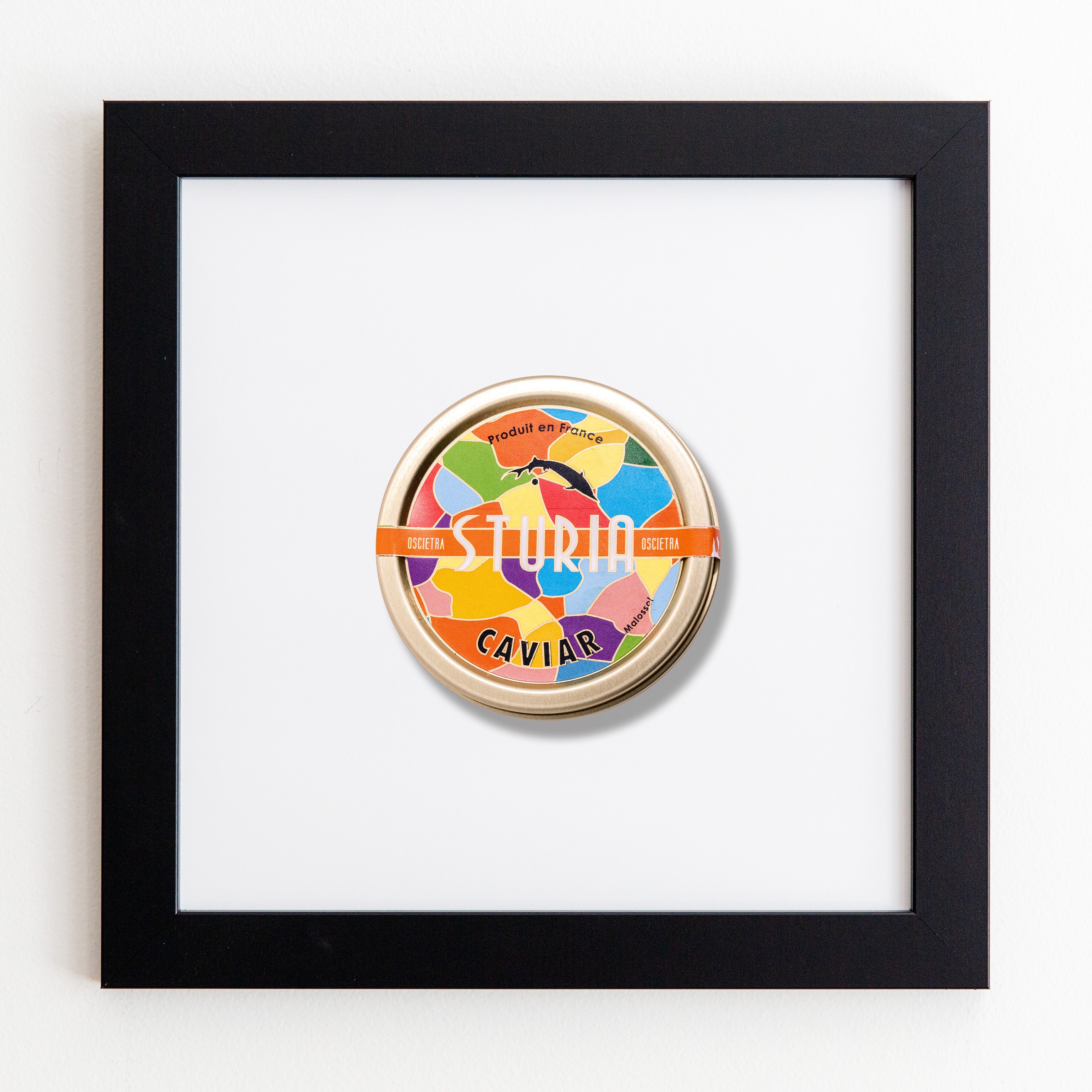 The Caviar Tin (Multicolor) print showcases an iconic matchbook design.
