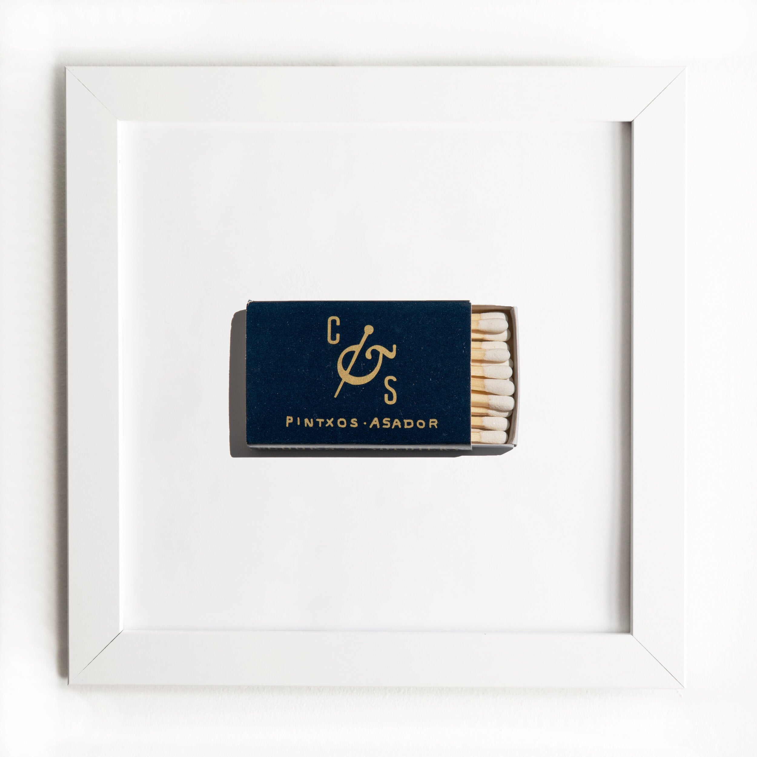 The Cooks and Soldiers (Navy) print showcases an iconic matchbook design.
