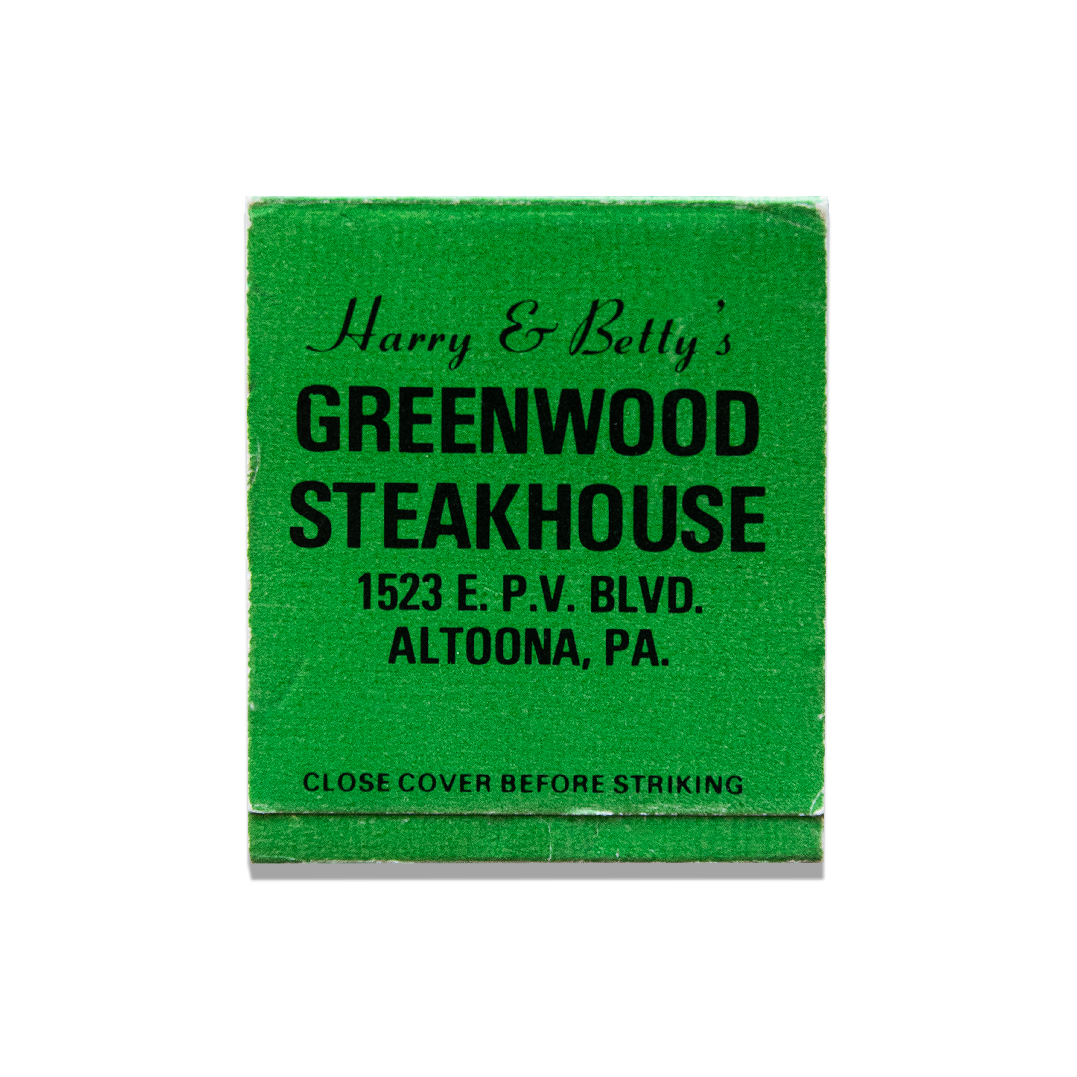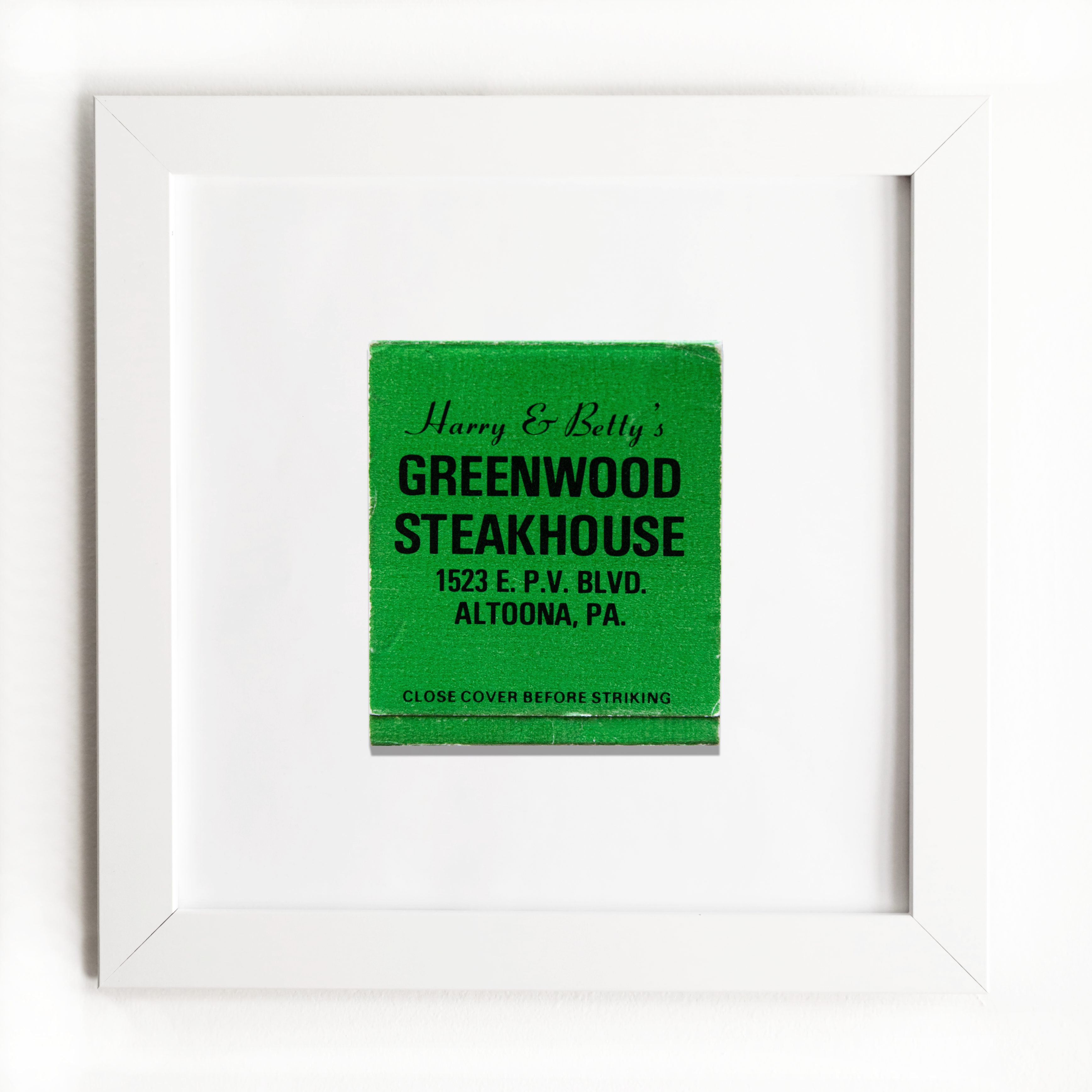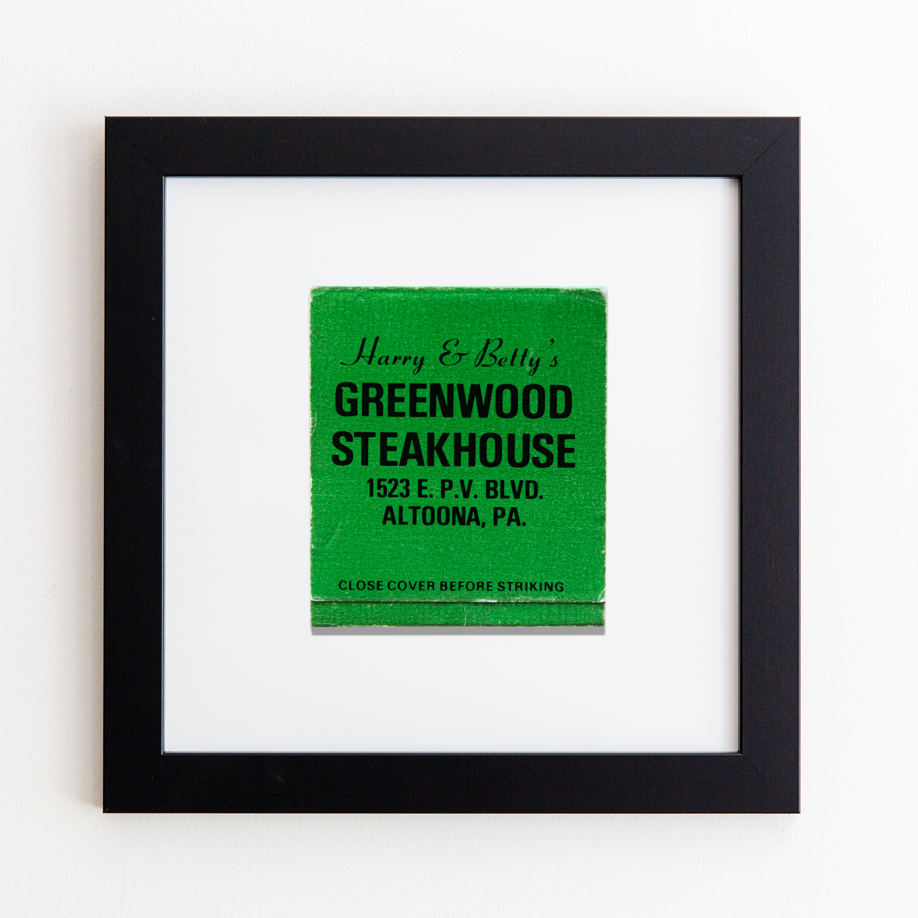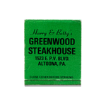The Harry & Betty's Greenwood Steakhouse print showcases an iconic matchbook design.