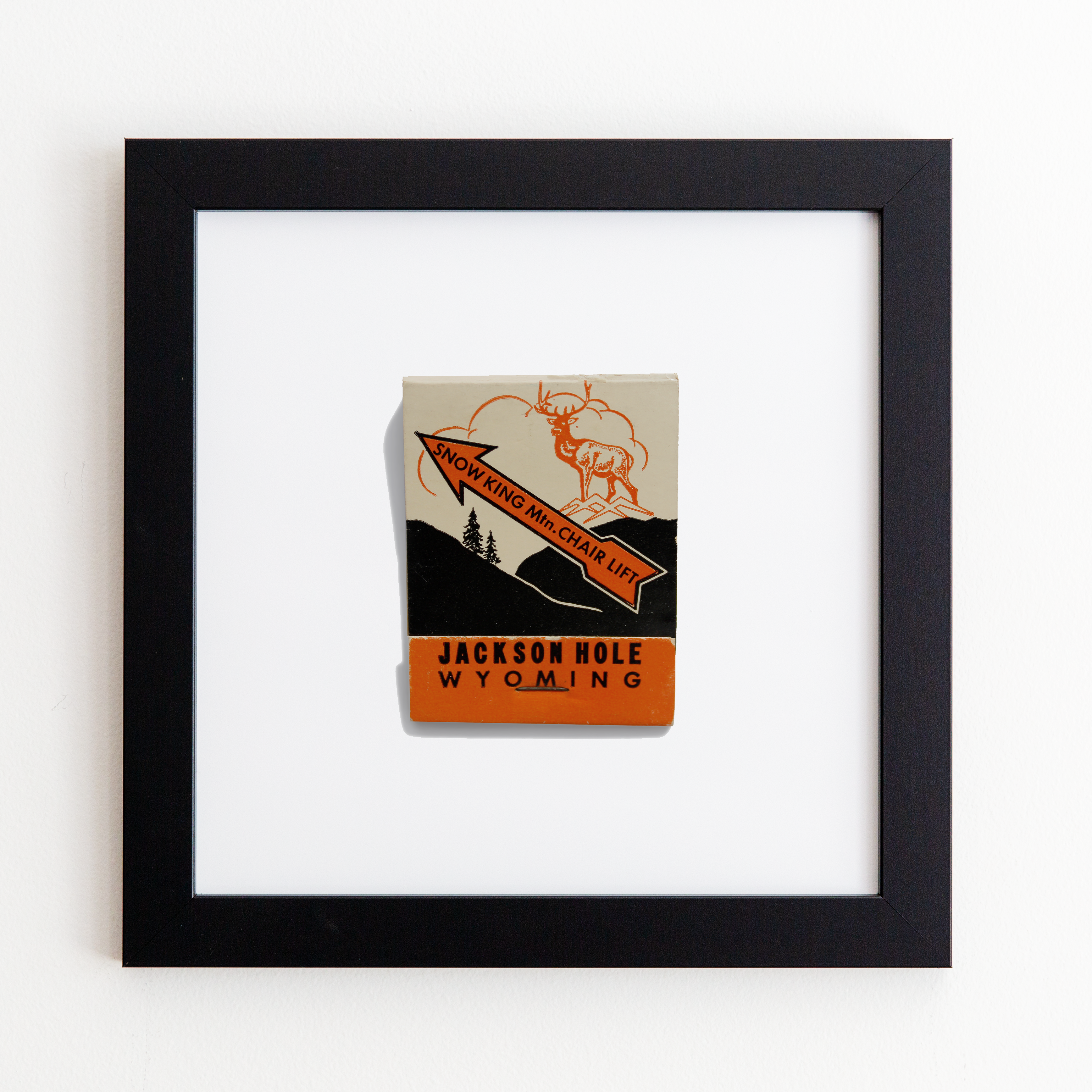 The Jackson Hole Wyoming print showcases an iconic matchbook design.