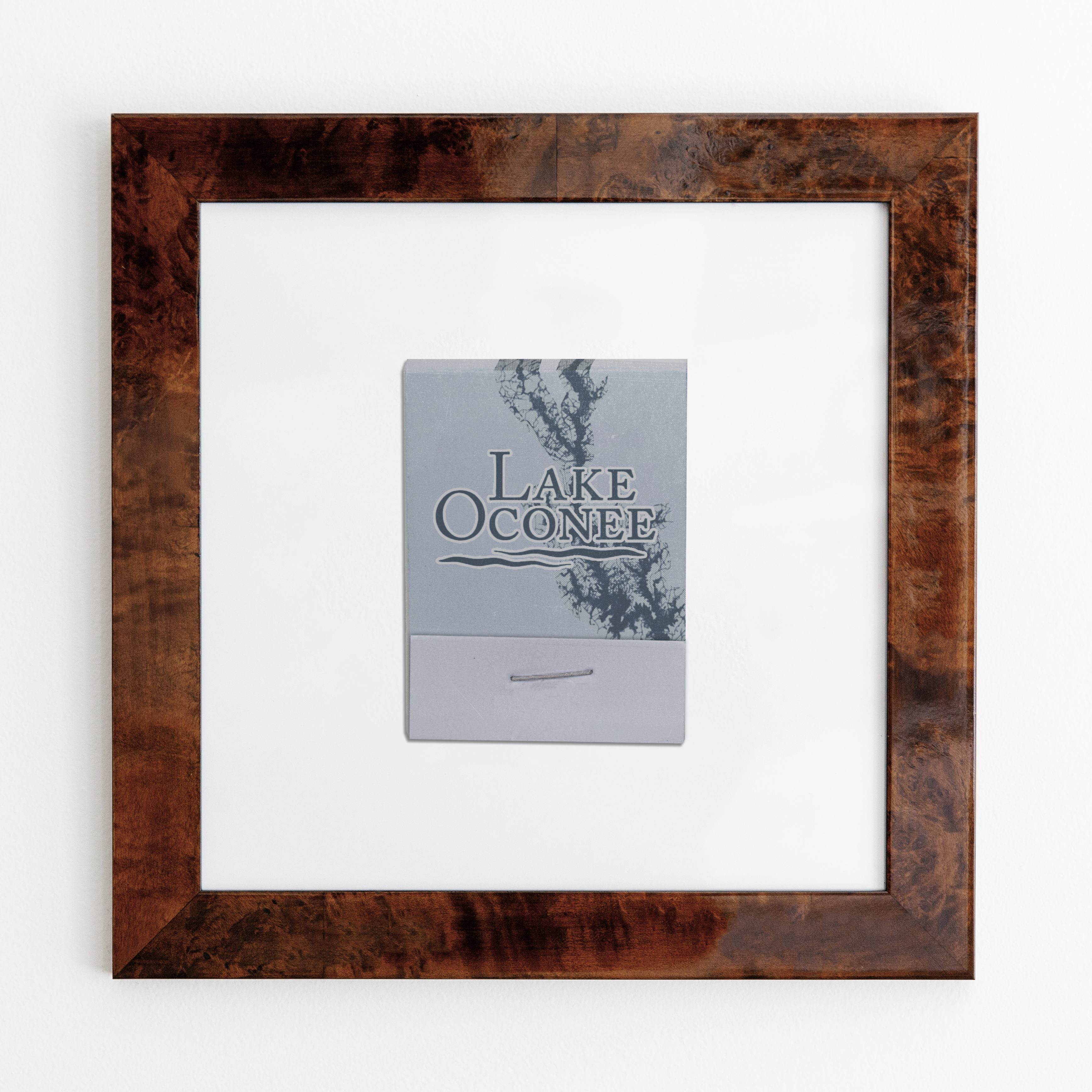 The Lake Oconee print showcases an iconic matchbook design.