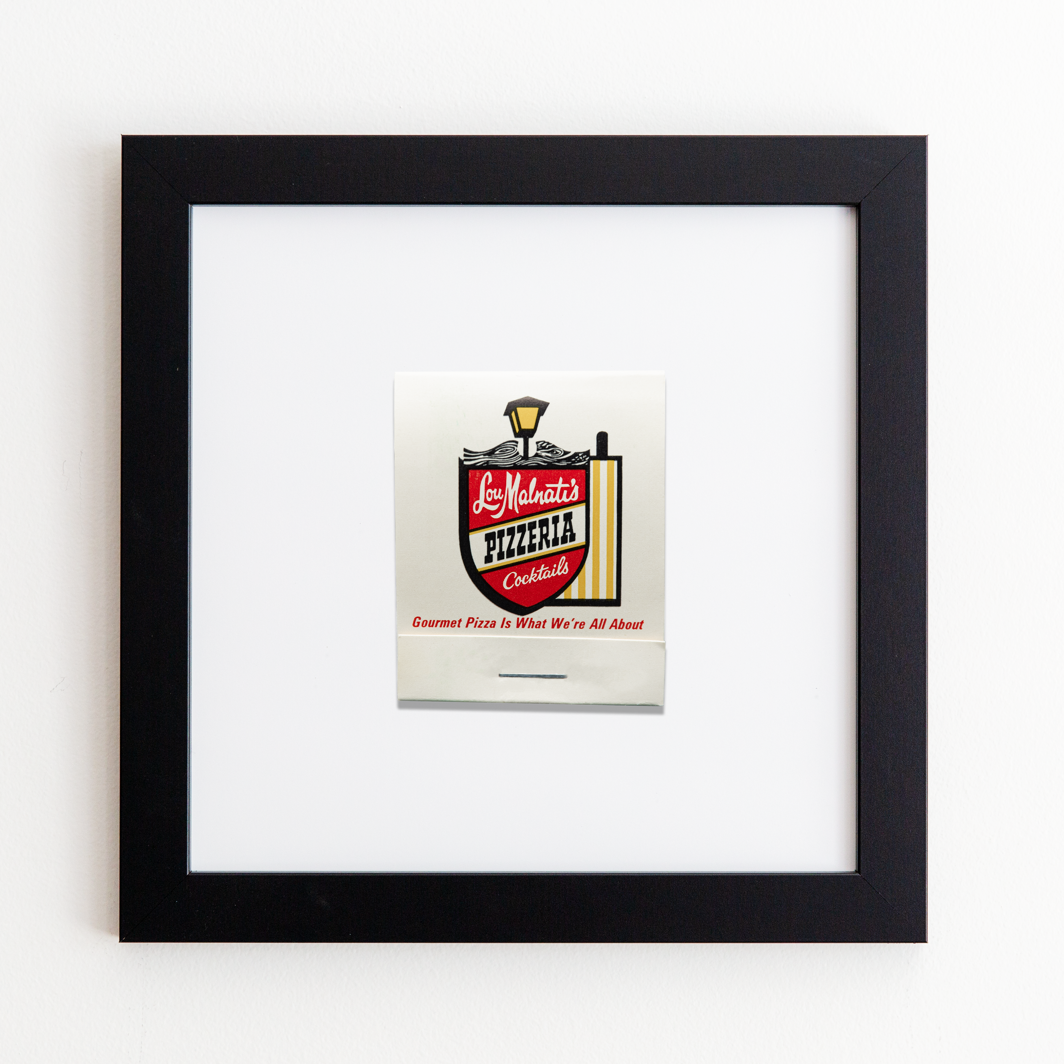 The Lou Malnati's Pizzeria print showcases an iconic matchbook design.