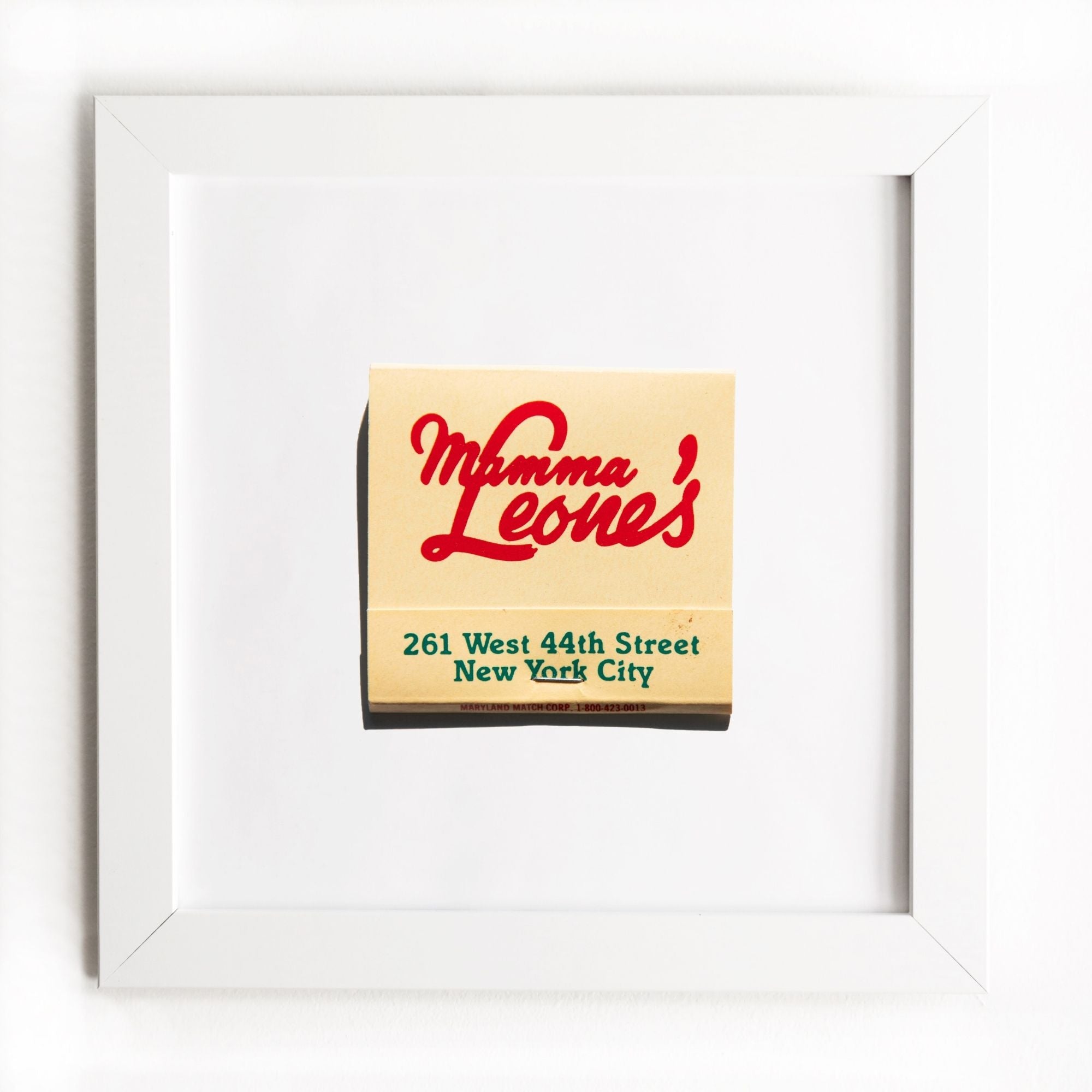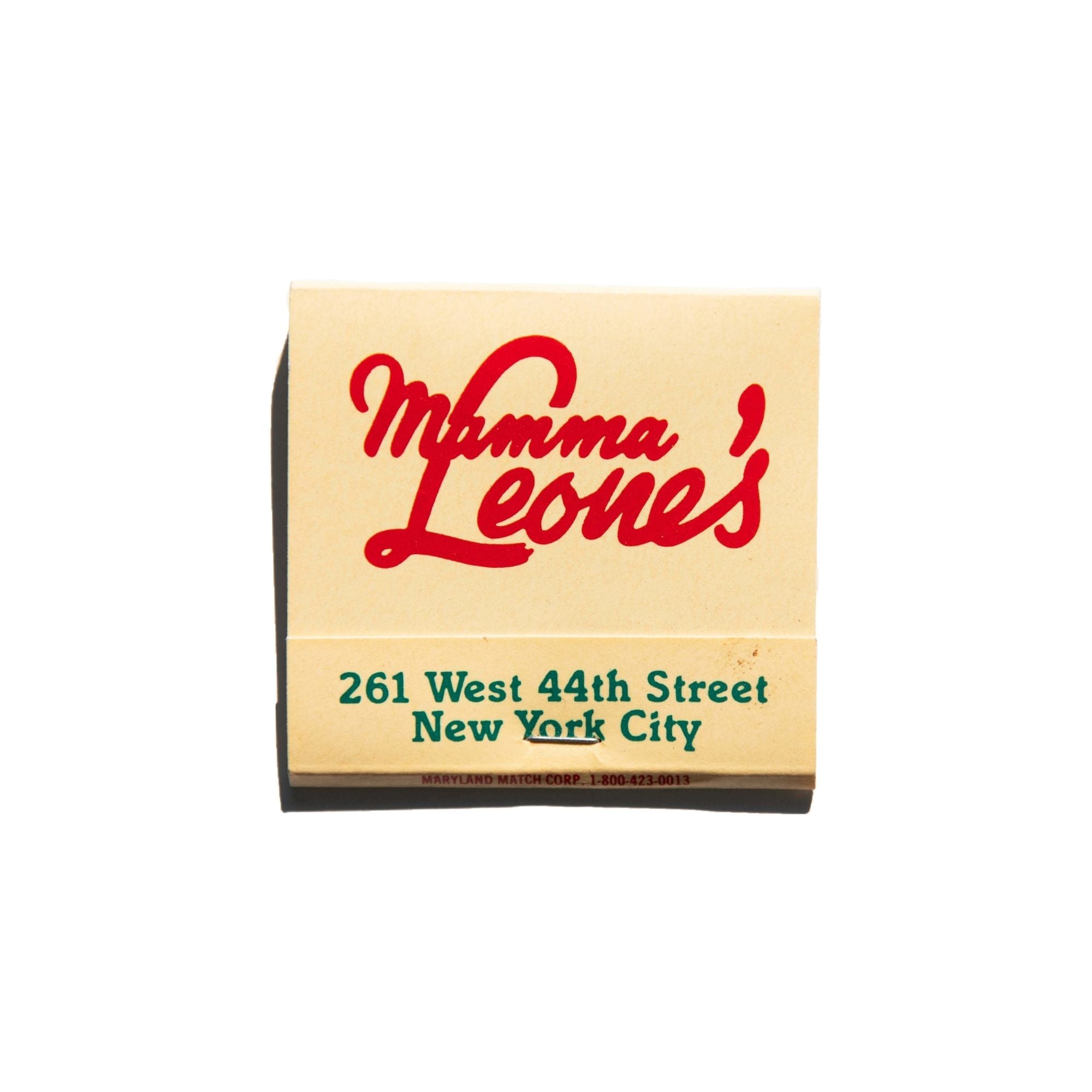 The Mamma Leone's print showcases an iconic matchbook design.