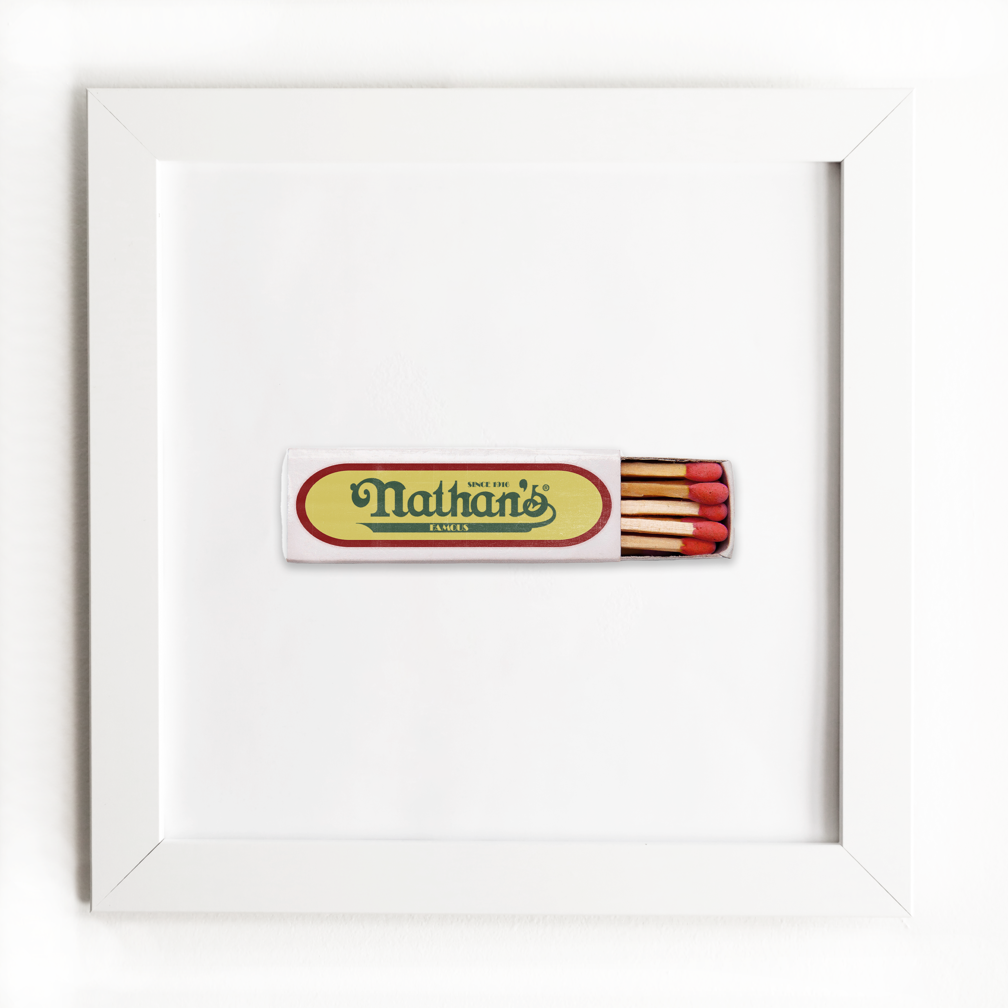 The Nathan's Hot Dogs print showcases an iconic matchbook design.