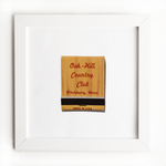 The Oak Hill Country Club (front) print showcases an iconic matchbook design.