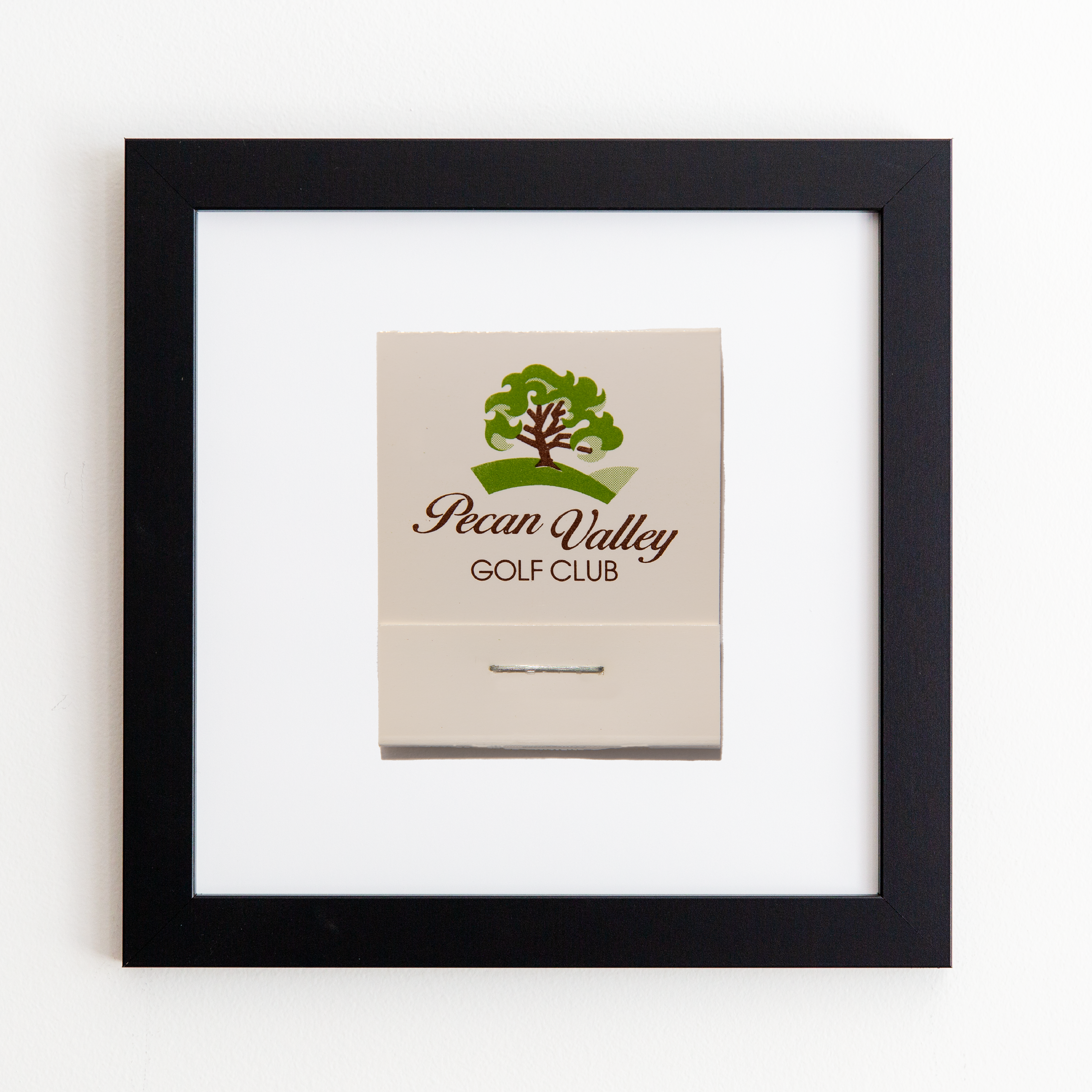 The Pecan Valley Golf Club print showcases an iconic matchbook design.