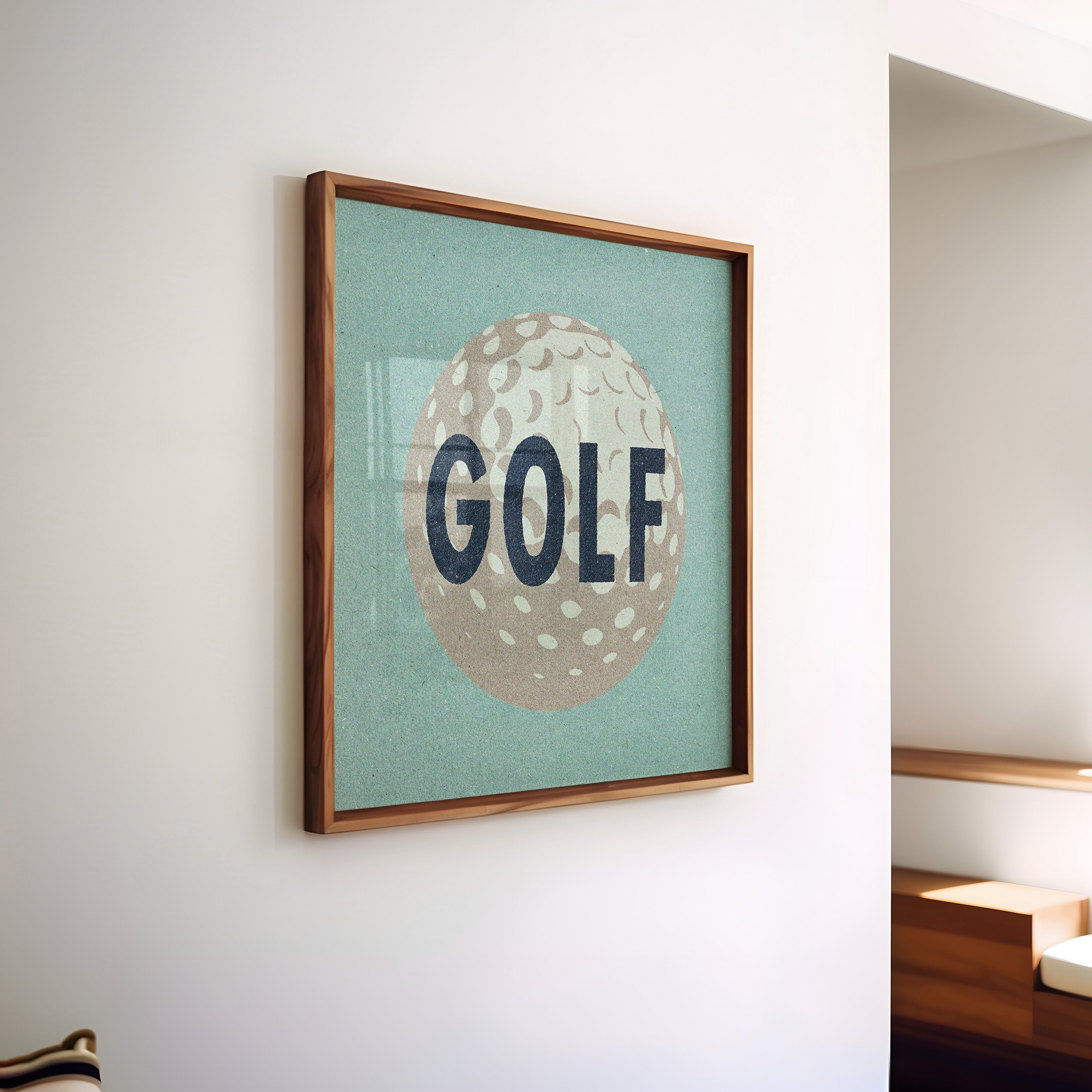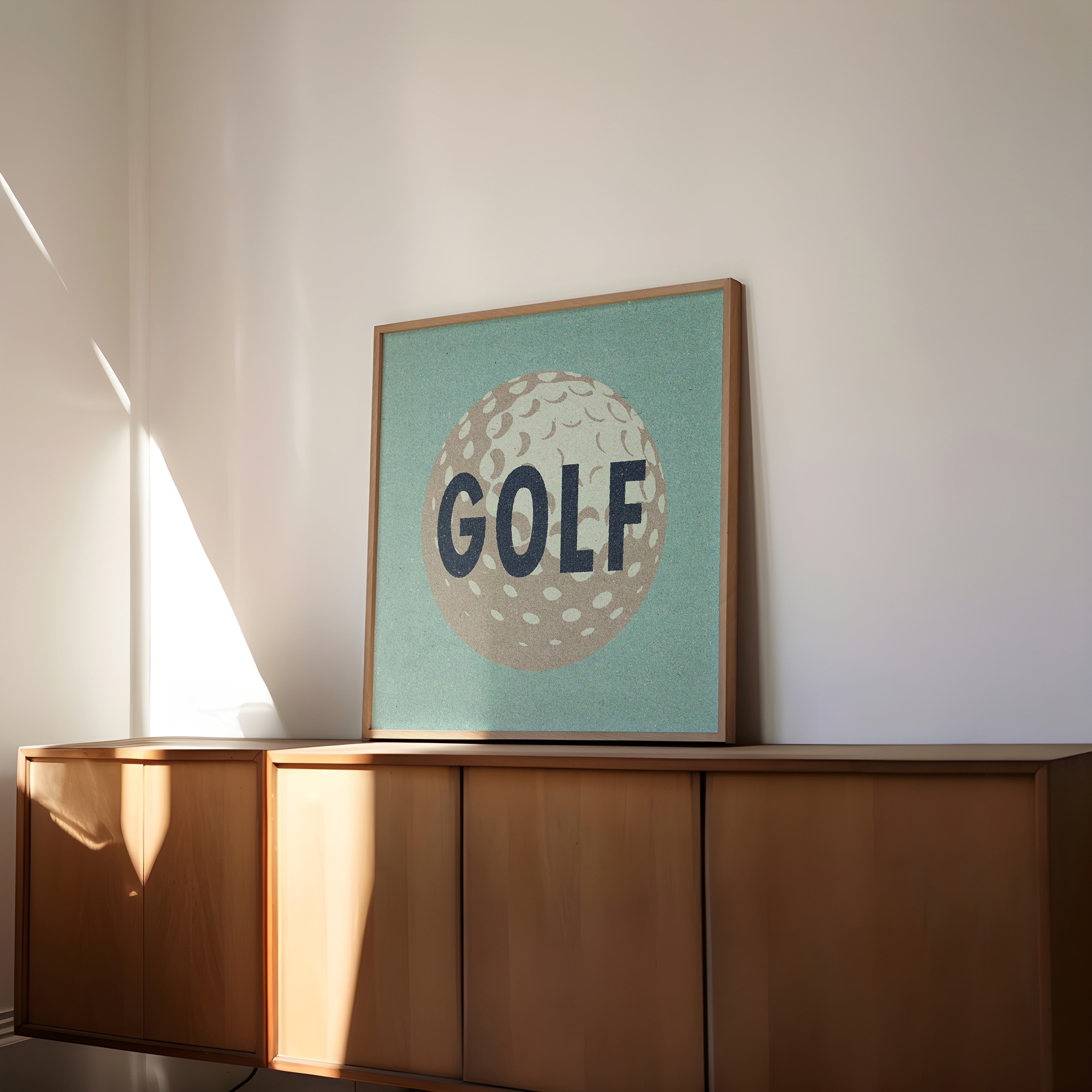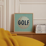Embrace the love for golf with our retro style golf ball home decor art print poster! A considerate gift for golf enthusiasts. The distinctive golf ball design effortlessly elevates your office walls, making it the perfect choice for stylish office decor. Whether framed on a shelf or wall, this print is a fantastic addition for showcasing your passion for the game of golf. An ideal gift for golfers, its dusty blue background adds a nice touch to home bars or dorm walls.