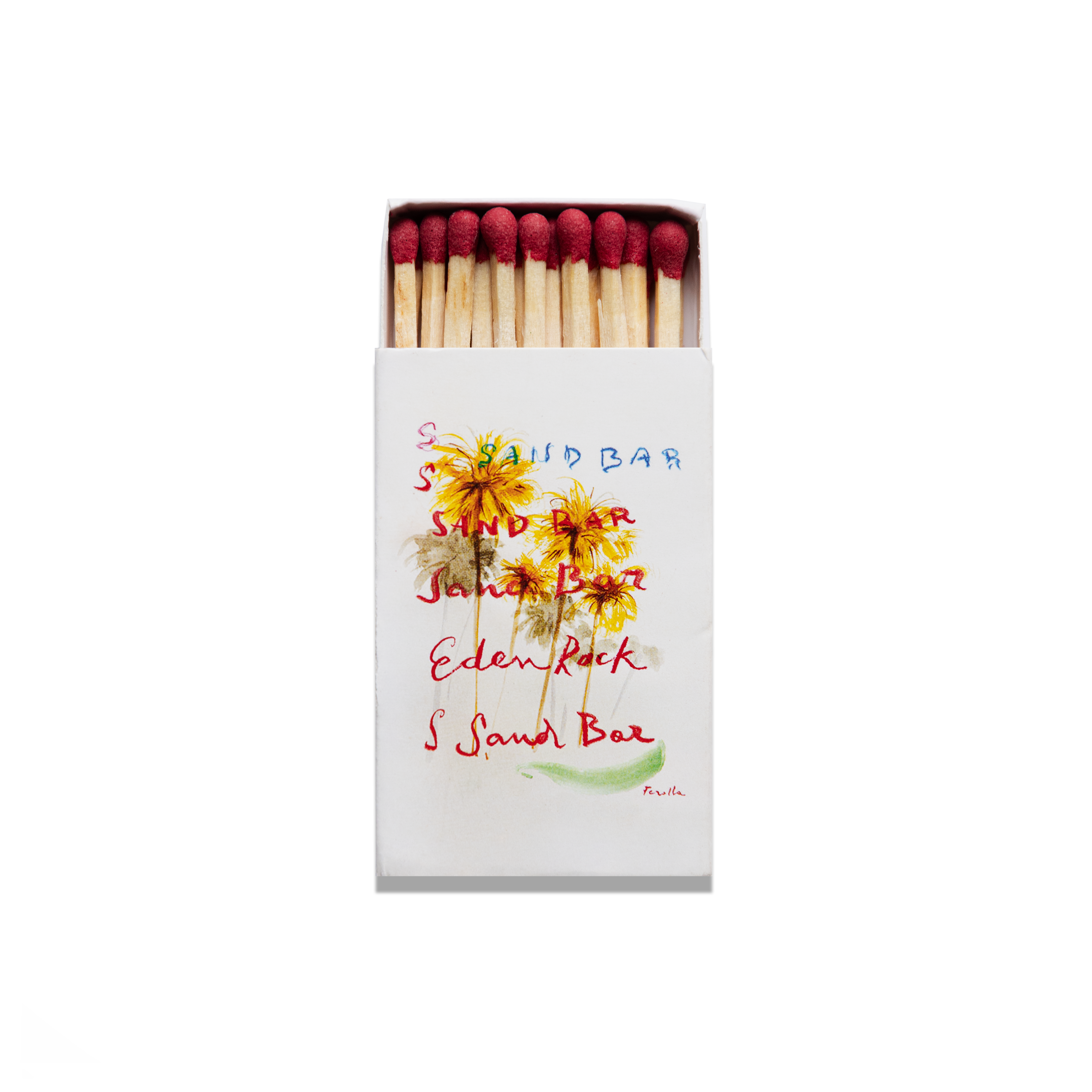 The Sand Bar St. Barth's (Front) print showcases an iconic matchbook design.