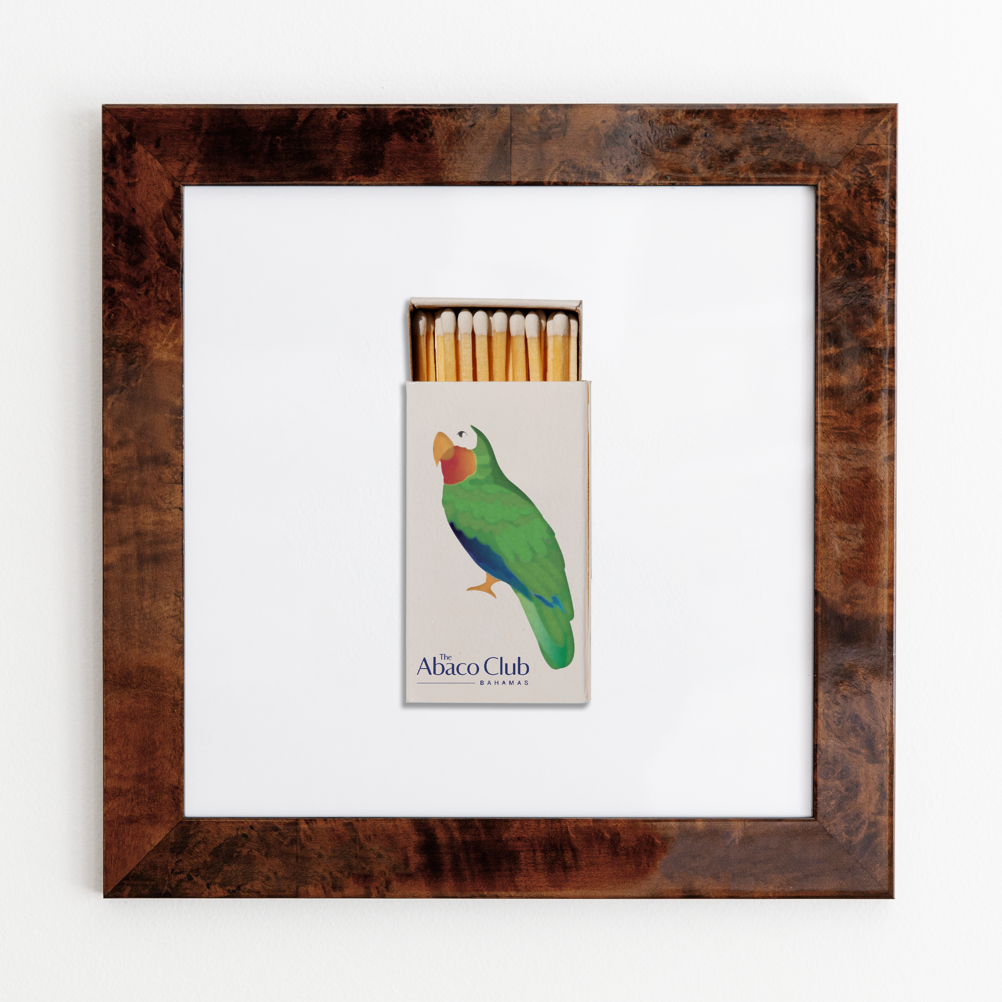 The Abaco Club print showcases an iconic matchbook design.