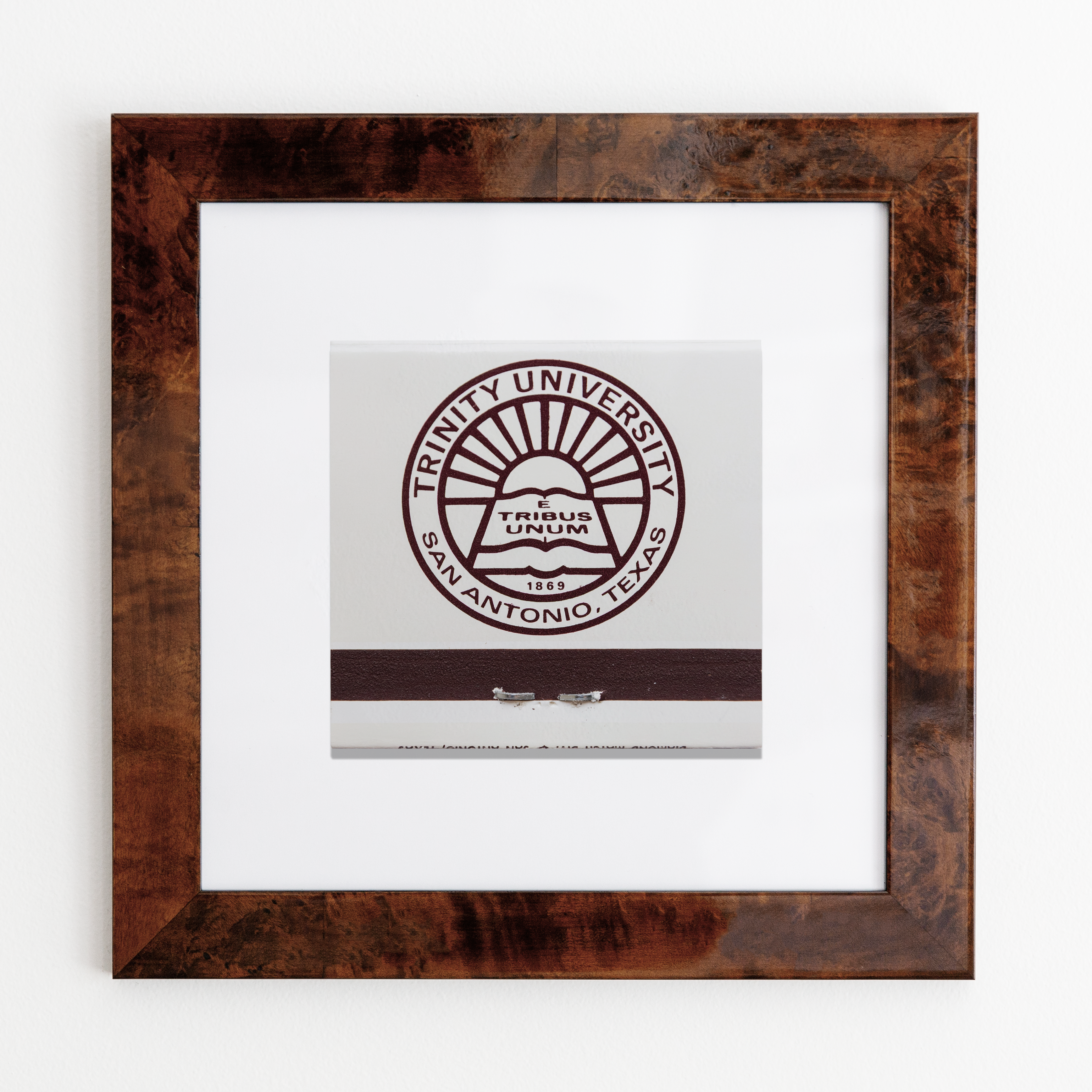 The Trinity University, San Antonio Texas print showcases an iconic matchbook design.
