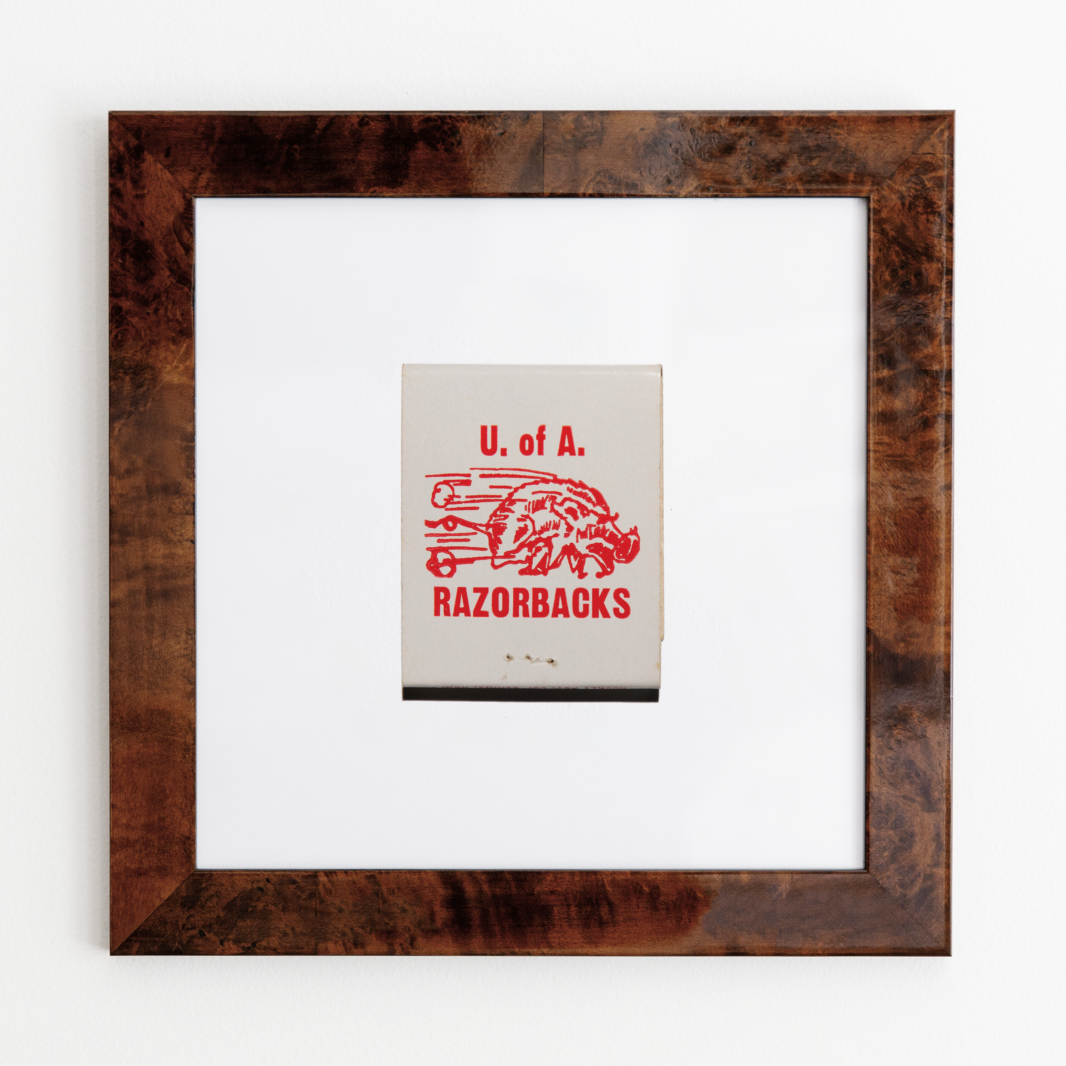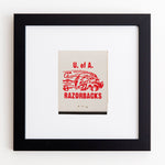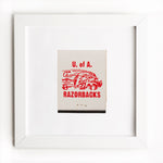 The University of Arkansas print showcases an iconic matchbook design.