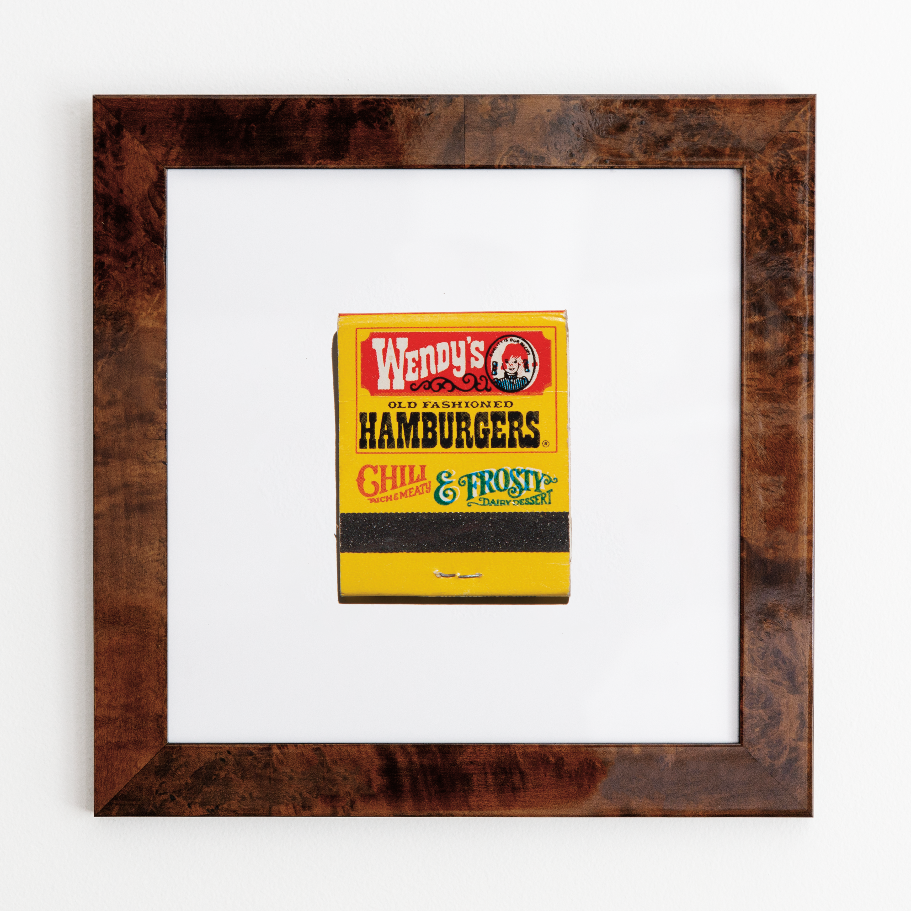 The Wendy's print showcases an iconic matchbook design.
